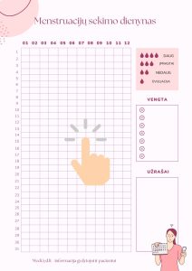 Menstruacijų dienynas – tai naudingas įrankis moterims, padedantis stebėti ir valdyti savo ciklo pokyčius. Naudodamiesi šiuo dienynu, galite įrašyti savo menstruacijų trukmę, intensyvumą ir bet kokias kitas svarbias detales, tokias kaip skausmas ar diskomfortas, kad galėtumėte geriau suprasti savo kūno funkcionavimą